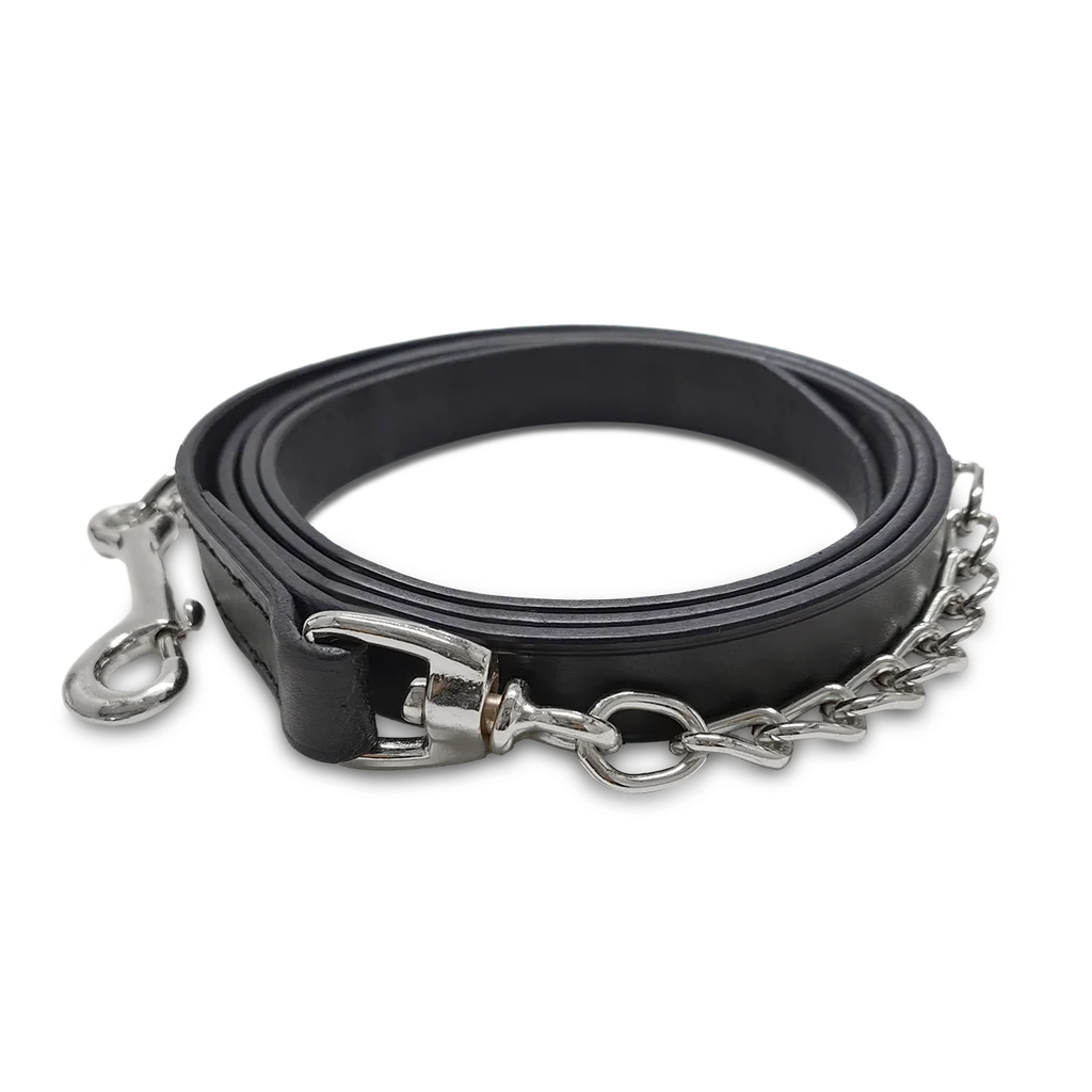 Crafted locally from premium-quality leather, it delivers outstanding durability and a polished, professional appearance. The light NP chain provides just the right amount of control for spirited horses, without compromising on comfort. A safety-conscious open end allows for quick release in emergency situations, making it an ideal lead for training, showing, or daily use.