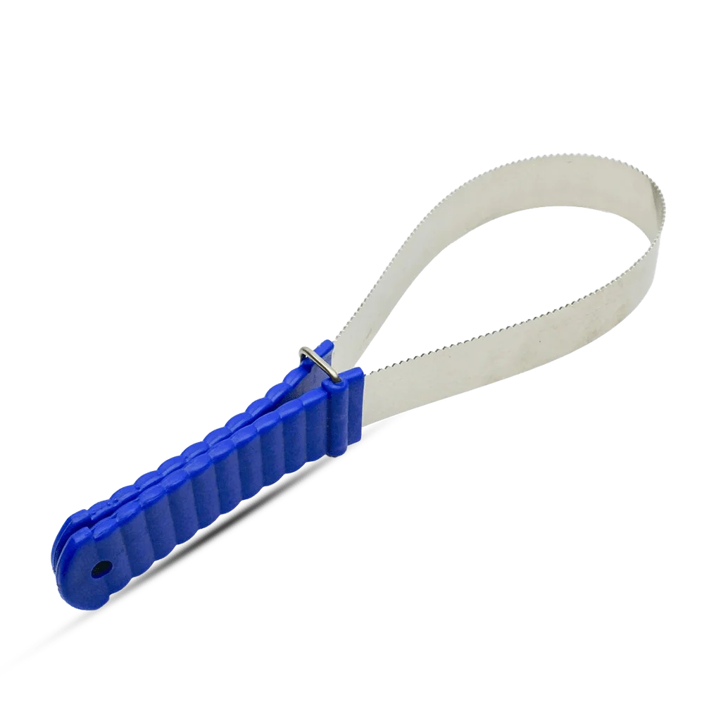This multipurpose grooming tool can be used as a shedding groomer and a sweat scraper. The serrated toothed edge works to remove shedding hair quickly and the smooth edge is perfect for removing water or sweat. The locking handle ring allows the scraper to fold in half for easy one-handed use.