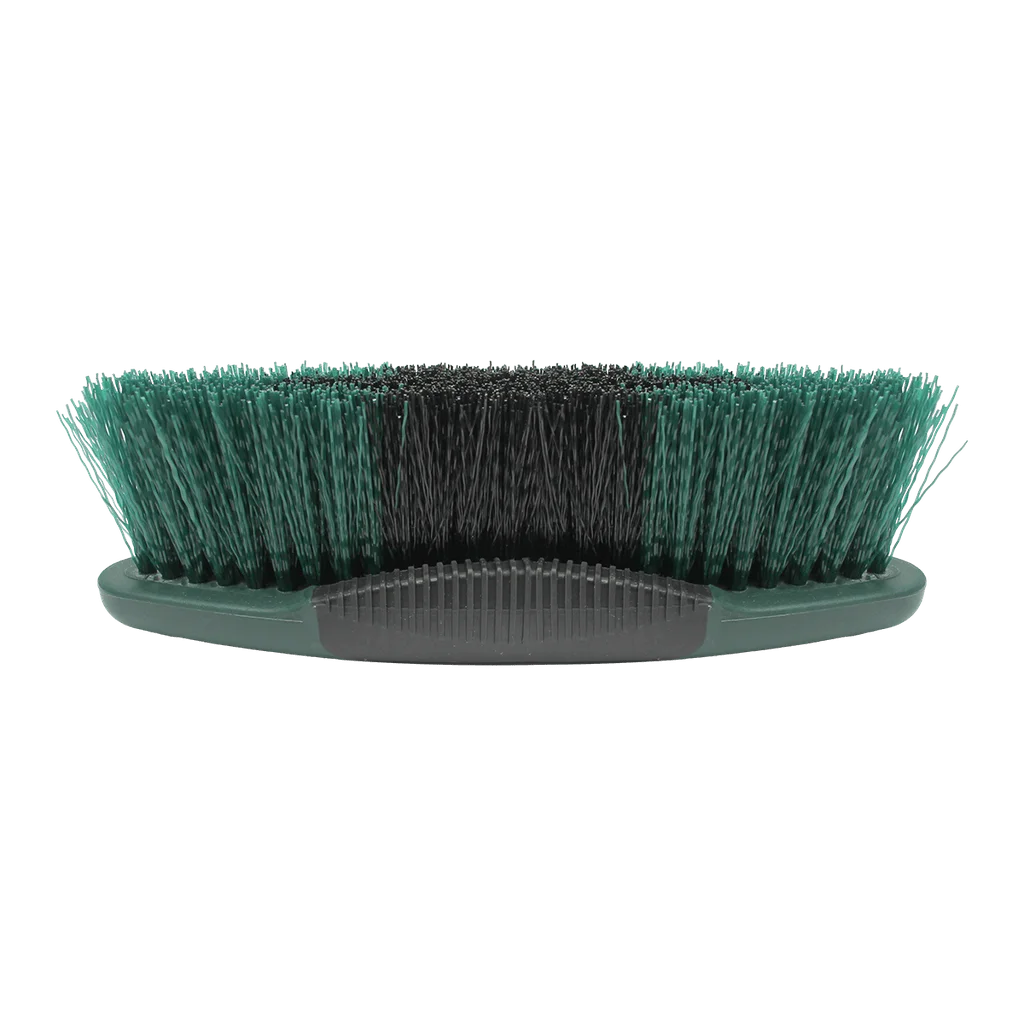 Multi coloured dandy brush, shaped to fit comfortably in your hand. The perfect brush to remove dried sweat and mud from the horse's coat, or to brush out manes and tails.