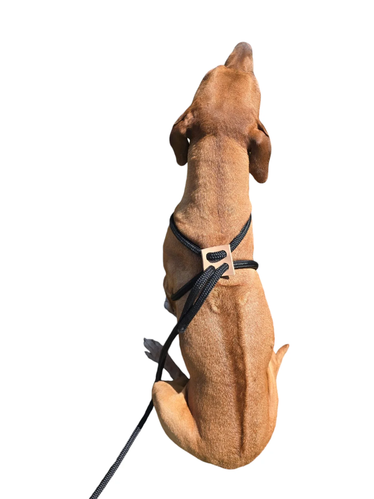 This harness is fitted with a strong hand loop at the end with an approx. 1.7m leash.